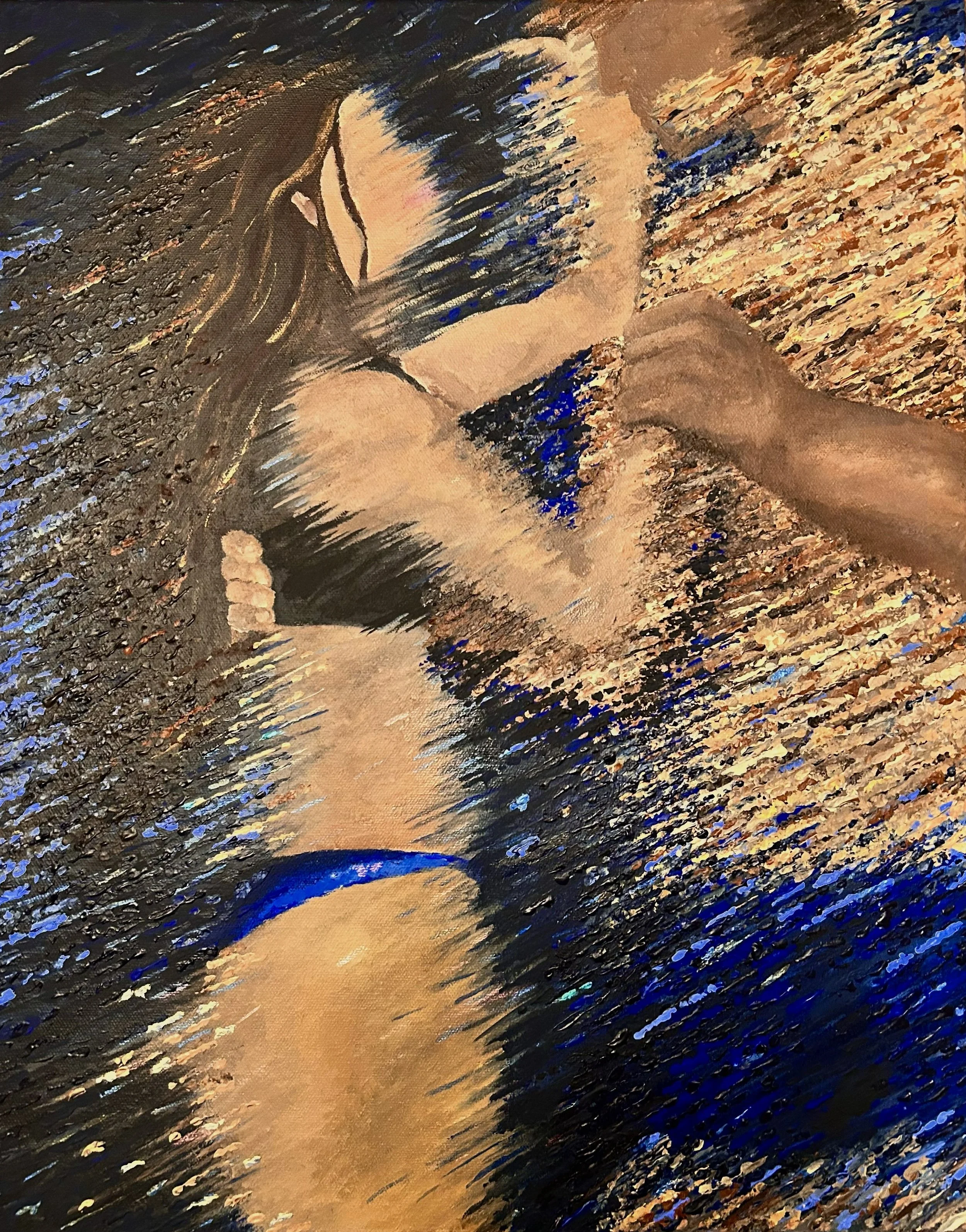 ‘If You Loved Me’ is another piece inspired by music. More specifically, “All I Want” by Kodaline. This piece channels the immersive shades of blue from the song, evoking a profound sense of yearning and reflection on a past love. Through its layered textures and colors, it captures the bittersweet memories that linger, as well as the depth of longing for someone who is no longer there.